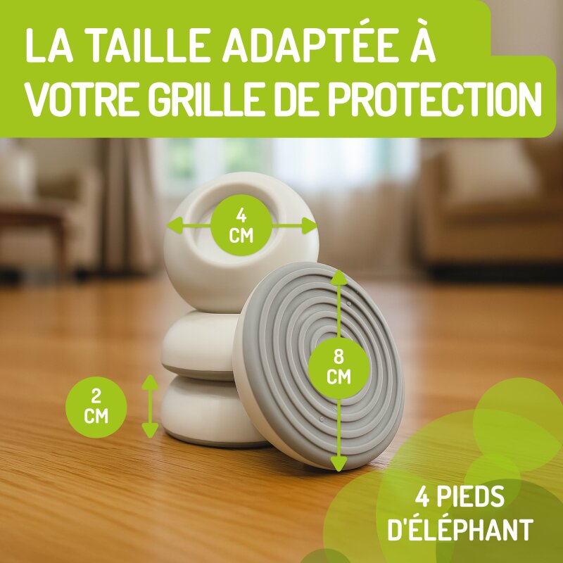 Die belastbaren Elefantenfüße werden dabei als schonende Klemm-Füße verwendet. Mit diesen intelligenten Wandsicherungen kann die Treppensicherung für Kinder ohne bohren sicher angebracht werden. Dadurch wird der Druck auf eine größere Fläche mit der Schutzgitter Befestigung ausgeübt. Ohne handwerkliche Kenntnisse können Türschutzgitter und Treppengitter ohne bohren & zum klemmen stabil und robust an der Wand montiert werden.
