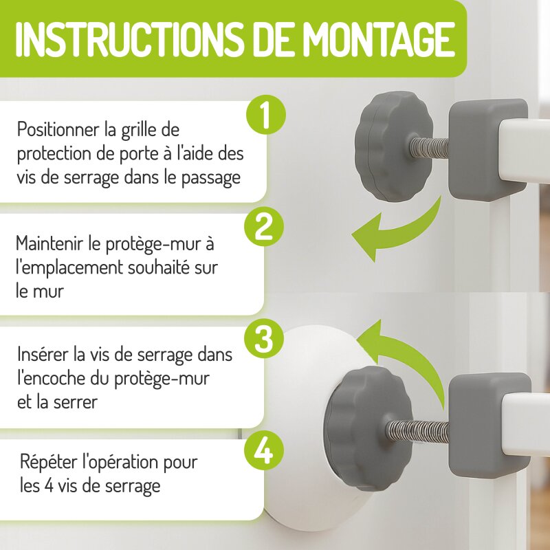 Wünschen Sie ohne großen Aufwand die volle Sicherheit für Ihr Kind und Ihren Hund? Dann sind diese intelligenten Wandschutz-Pads, welche an den Wänden nicht abfärben, Ihre perfekte Lösung. Der Wandschutz für Treppenschutzgitter ist mit kurzen Griffen, ohne jegliche technischen Kenntnisse einfach und ohne bohren Halt sicher angebracht. Darüber hinaus ist dieses praktische Produkt für alle Marken von Türen und Treppengitter geeignet. Die Wände werden von Löchern verschont und kein Bohren ist notwendig. Darüber hinaus bleiben Ihre Wände farblich unverändert, da nichts abfärbt.