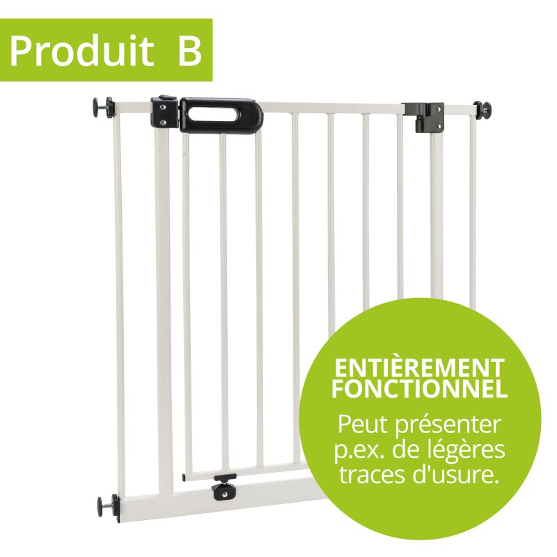 Das Schutzgitter Merle aus Metall für Kinder stammt aus einer Kunden-Rücksendung und ist geprüft. Funktionell einwandfrei - Es können Lackkratzer vorhanden sein.