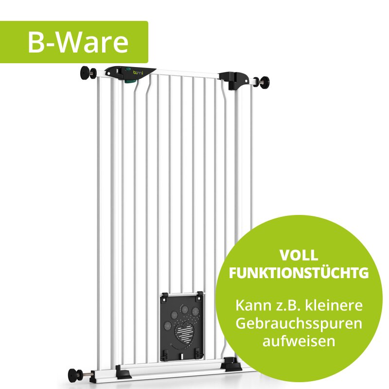 Das Türschutzgitter & Treppenschutzgitter mit Katzenklappe in Weiß aus Metall für Kinder & Haustiere stammt aus einer Kunden-Rücksendung und ist geprüft. Funktionell einwandfrei - Es können Lackkratzer vorhanden sein.