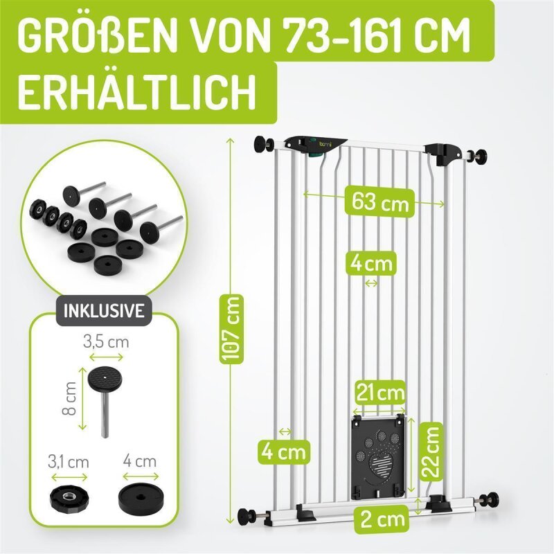 Das Haustierschutzgitter verfügt über eine flache untere Leiste, die Stolperfallen minimiert und das Überqueren sicher macht. Die Tür schließt sich durch einen leichten Anstoß von selbst und ist somit besonders praktisch im Alltag. Zusätzlich bietet die Zwei-Wege-Öffnung Flexibilität, da das Hundegitter immer in Laufrichtung öffnet. Die Open-Stop-Funktion erlaubt es, die Tür bei Bedarf auf 90° offen zu fixieren.