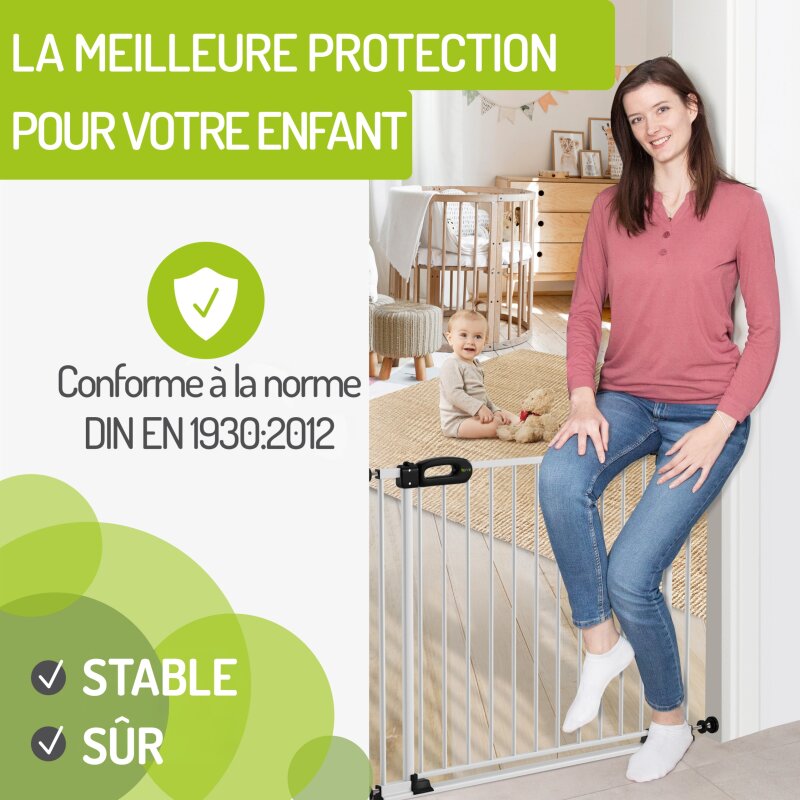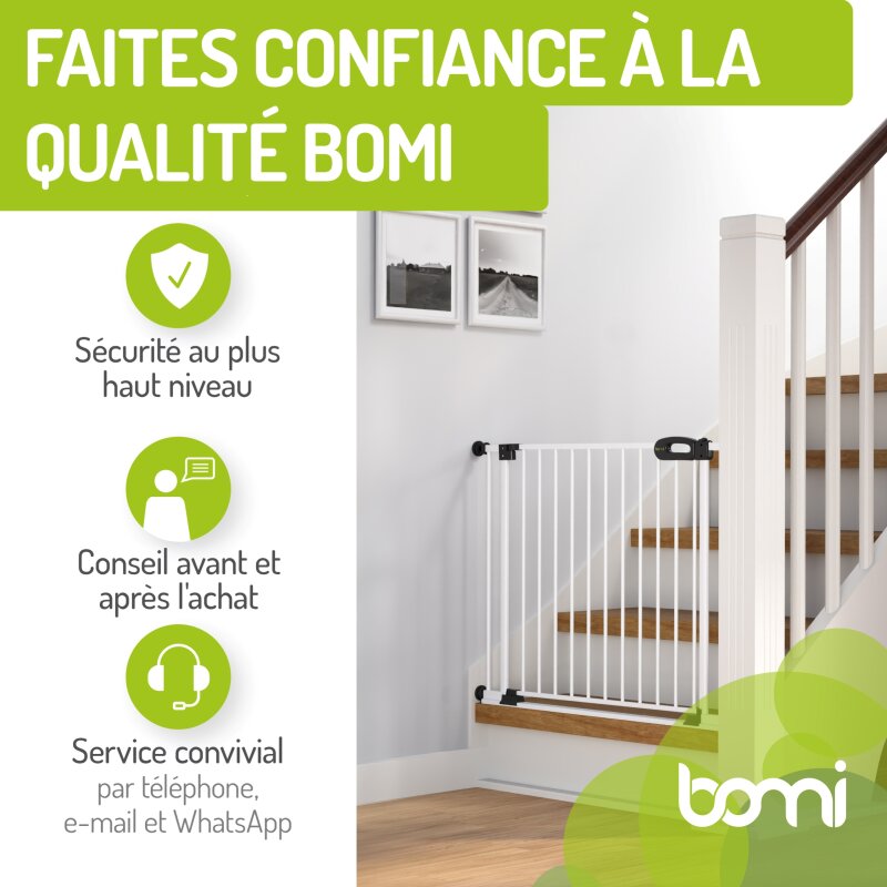 Das Kinderschutzgitter „Merle“ von BOMI wurde nach der Sicherheitsnorm DIN EN 1930:2012 geprüft. Es bietet höchste Sicherheit, ohne dabei auf Komfort oder Ästhetik zu verzichten. Eine optimale Lösung für Eltern, die ihren Haushalt kindersicher gestalten möchten – ganz ohne Bohrlöcher oder komplizierte Montage.