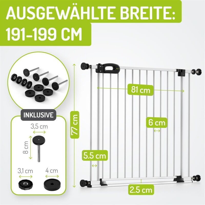 • Zwei-Wege-Öffnung: Baby Tür Gitter öffnet IMMER in Laufrichtung. Open-Stop-Funktion auf 90°: Schutzgitter Tür lässt sich bei Bedarf feststellen, sodass der Durchgang offen ist. Auto-Close und Auto-Lock: Das Tür und Treppengitter schließt automatisch und verriegelt verlässlich. Die Baby Tür kann wahlweise mit der Verriegelung links oder rechts montiert werden