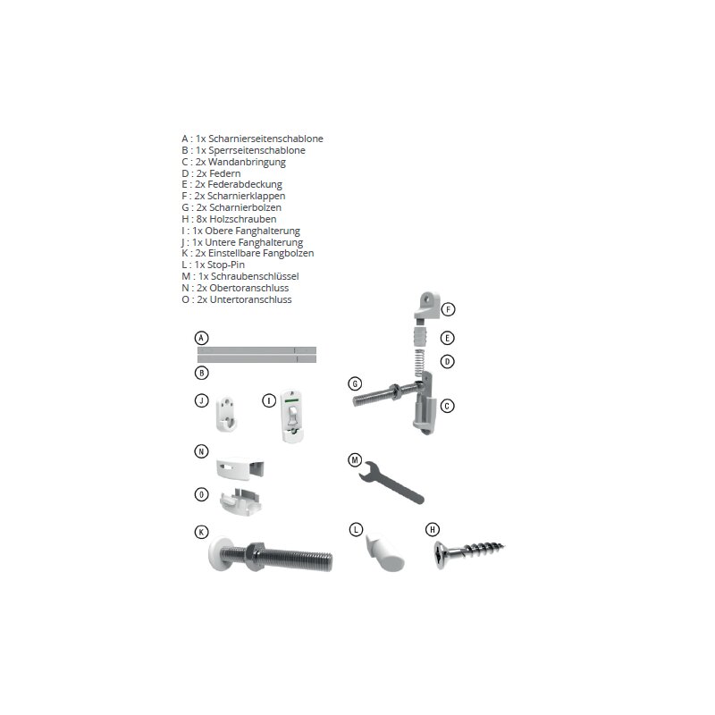 Lieferumfang: 1× kompletter Beschlagbeutel gemäß Auflistung (ohne Schutzgitter)