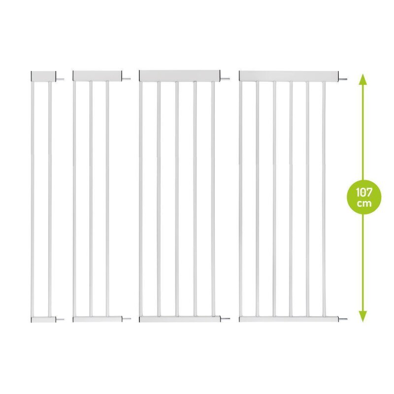 Les extensions extra-hautes BOMI pour les barrières de sécurité Merle et Mira offrent une solution particulièrement sûre pour les passages élevés ou les zones nécessitant une protection supplémentaire en hauteur. Avec leur hauteur de 107 cm et leur construction robuste en métal blanc thermolaqué, elles garantissent une stabilité maximale et une sécurité idéale dans votre maison.