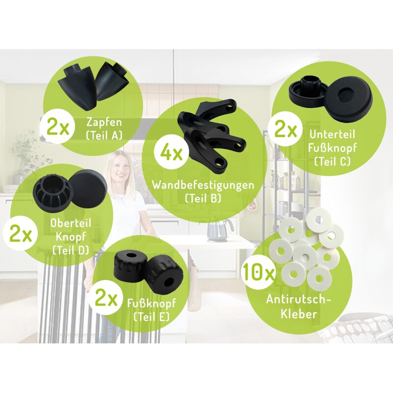 Dieses Set ist ein geprüftes Original-Ersatzteil von BOMI und garantiert höchste Sicherheit und Kompatibilität. Damit bleibt Ihr Schutzgitter Milo stets zuverlässig im Einsatz – egal, ob als Kaminschutzgitter, Raumteiler oder Absperrgitter.