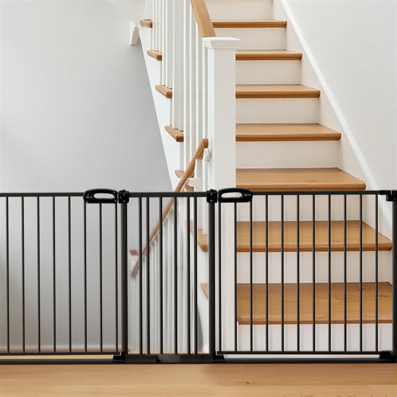 Sichern Sie Ihre Treppenaufgänge und -abgänge zuverlässig mit unserem extra breiten Türschutzgitter mit Doppeltür – ideal für Kinder und Haustiere. Dank einfachem Klemmmechanismus ist kein Bohren notwendig. Die hochwertige Metallkonstruktion bietet maximale Stabilität, Sicherheit und Komfort für den Alltag mit Baby oder Hund – auch in Mietwohnungen.