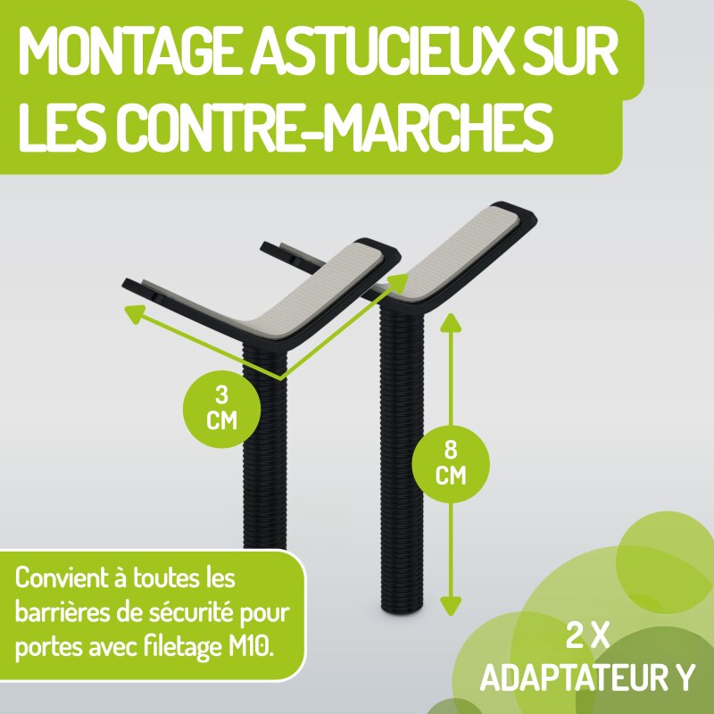 Sichern Sie Ihre Treppen zuverlässig ab – mit den schwarzen Y-Adaptern für Merle & Mira von BOMI.